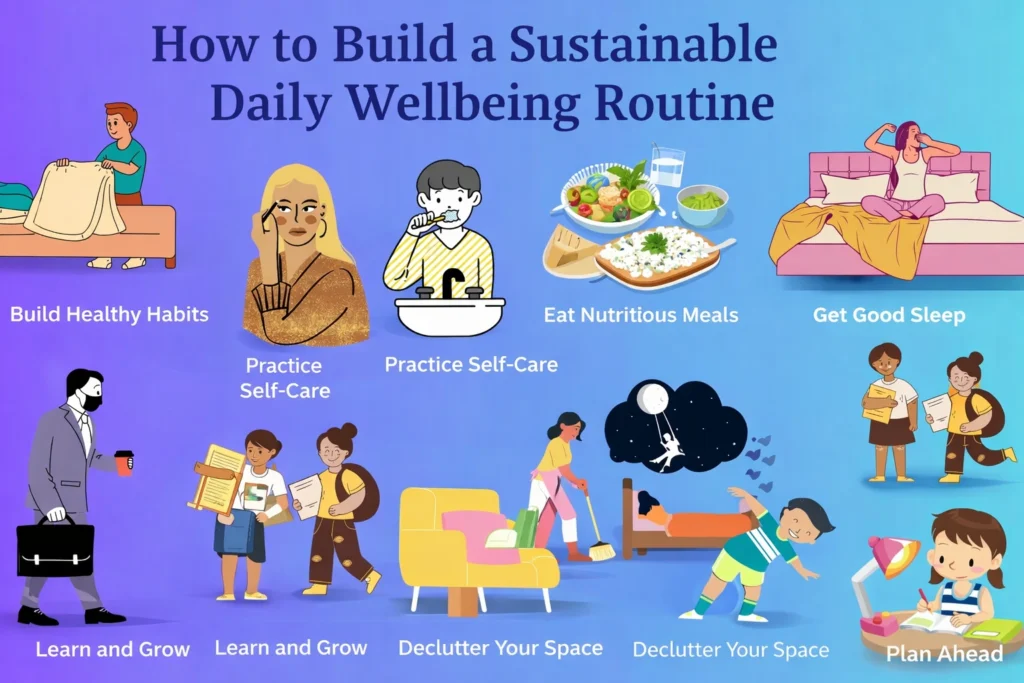 Avoid overloading yourself. Sustainable daily wellness routines evolve gradually.