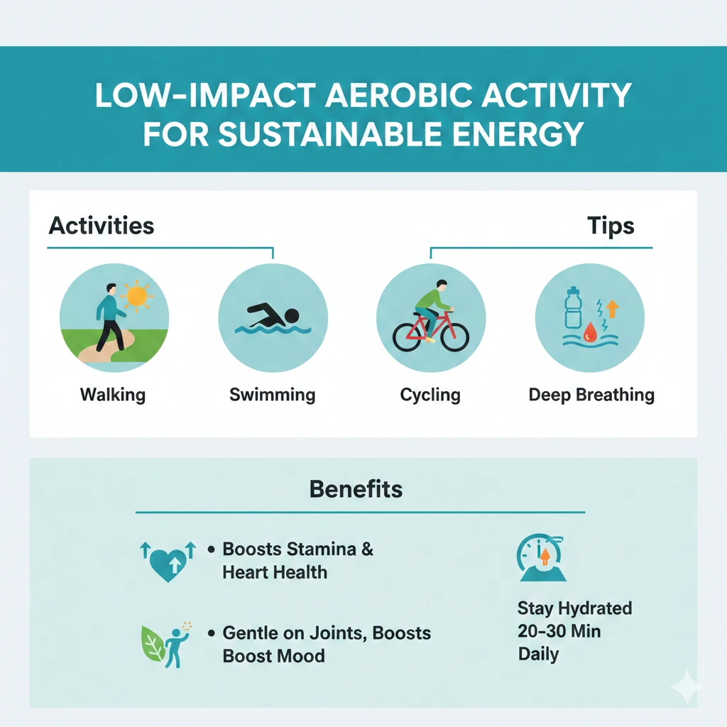 You do not need intense workouts to feel the benefit. In fact, low-impact aerobic activity is often more sustainable.